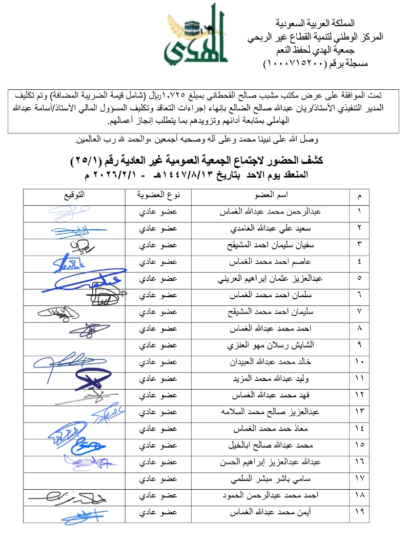 محضر اجتماع الجمعية العمومية غير العادية الأول لعام 2026